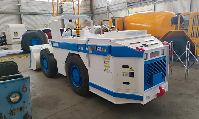 The electric carry-scraper features on compact structure, easy operation, no exhaust gas pollution, low energy consumption, low noise, low operating cost and high production efficiency. It is a new type of high-efficiency and energy-saving equipment in underground mines. The central articulated belt locking device allows the equipment to be safer and more reliable during maintenance.